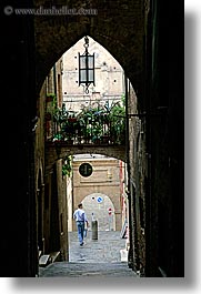 archways, cobblestones, europe, italy, men, narrow streets, siena, streets, towns, tuscany, vertical, walking, photograph