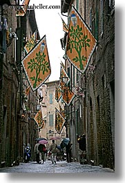 cobblestones, europe, flags, italy, narrow streets, people, siena, streets, towns, tuscany, vertical, walking, photograph